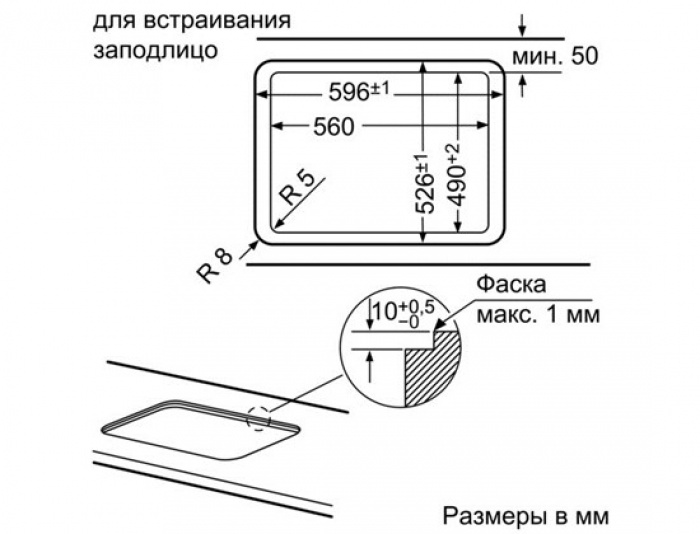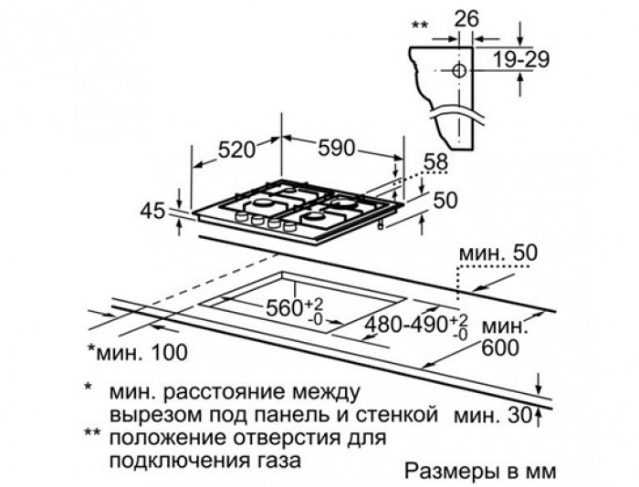 Размеры для встраивания (ШхГ)