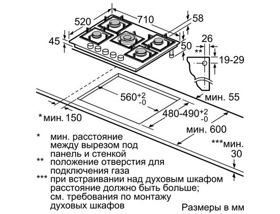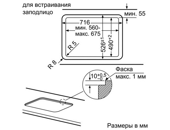 Размеры для встраивания (ШхГ)
