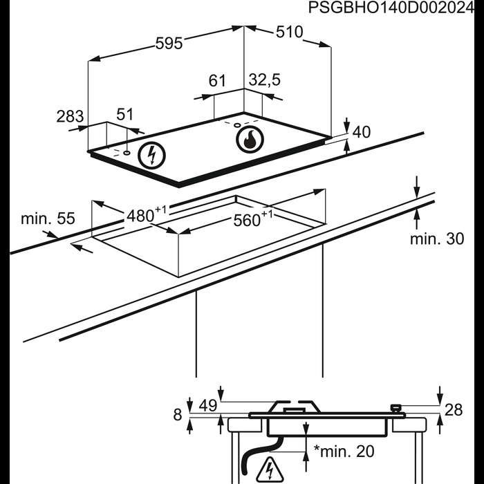 | Размеры для встраивания (ВхШхГ) | 40x560x480 мм |