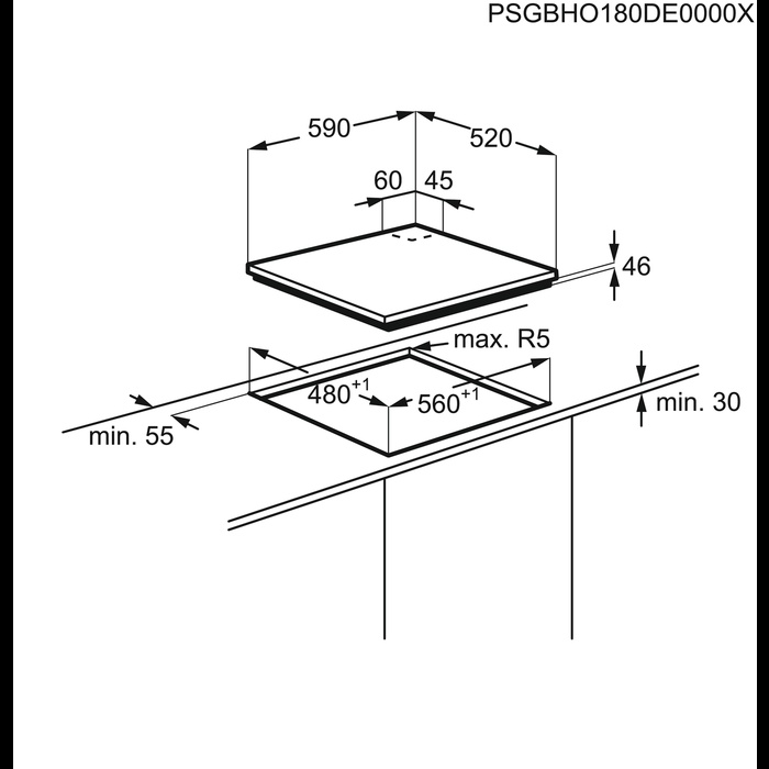 | Размеры для встраивания (ВхШхГ) | 40x560x480 мм |