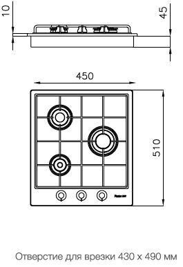 Узкая газовая варочная поверхность, для встройки в шкаф 45см. 3 конфорки с горелками разной мощности.