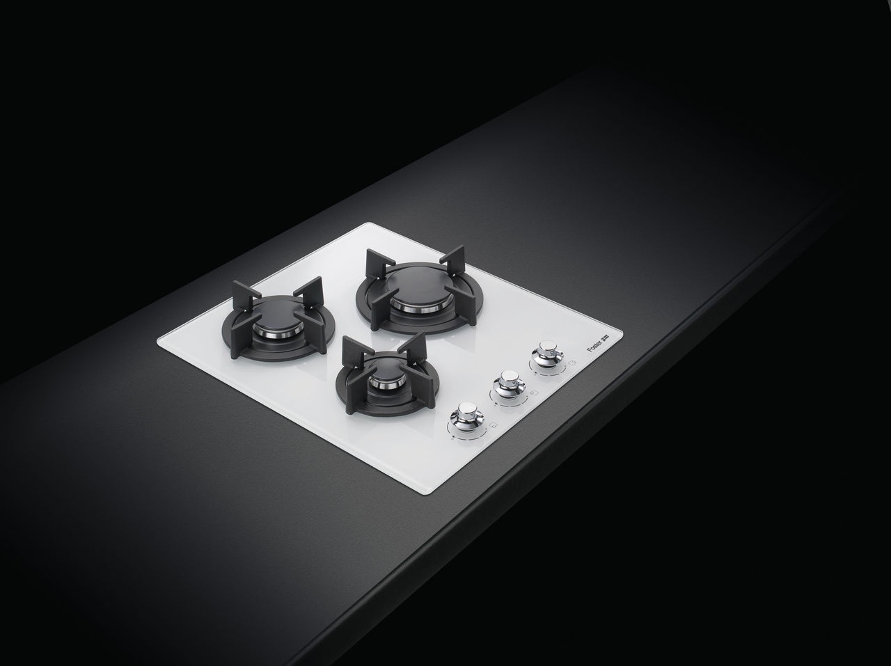 Узкая газовая варочная поверхность, для встройки в шкаф 45см. 3 конфорки с горелками разной мощности.