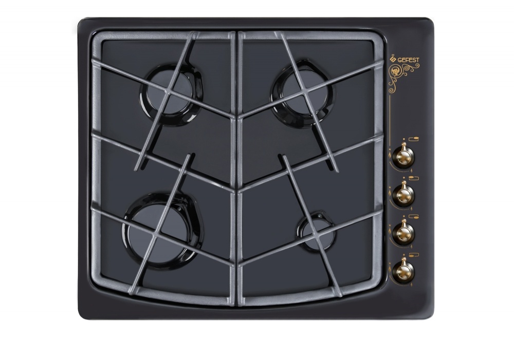 Габариты (ВхШхГ) 13.6x60x52 см. Размер ниши для встраивания (ВхШхГ) 10x56x49 см. Электроподжиг автоматический. Газ-контроль. Держатели для посуды чугунные
