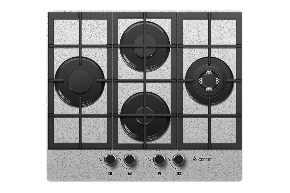 Варочная поверхность: стеклянная Размеры (ШхГхВ): 67x52.5x10 см. Размеры монтажного проема (ШхГхВ): 55.4x48.6 см. Газ-контроль горелок стола. Чугунные решетки горелок стола.