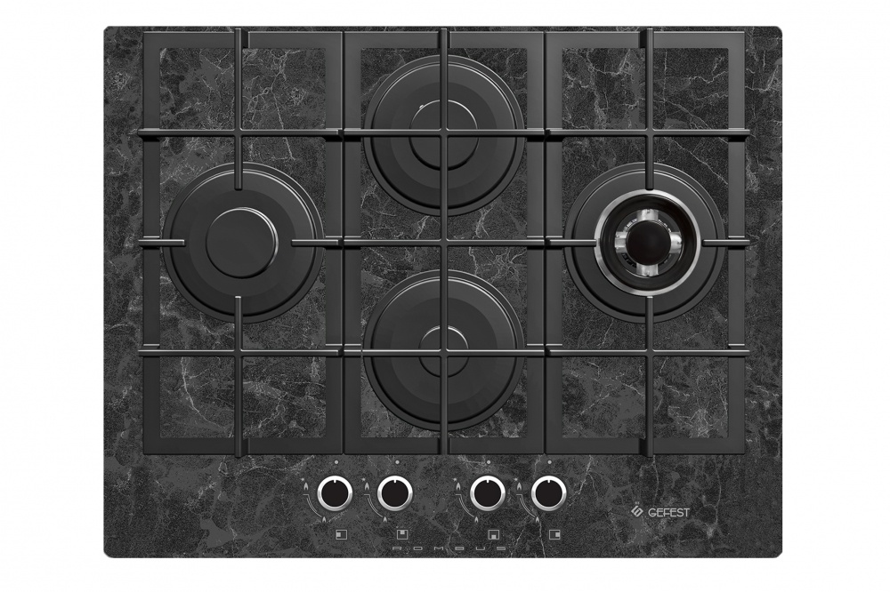 Варочная поверхность: стеклянная Размеры (ШхГхВ): 67x52.5x10 см. Размеры монтажного проема (ШхГхВ): 55.4x48.6 см. Газ-контроль горелок стола. Чугунные решетки горелок стола.