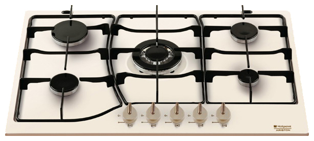 Газовая варочная поверхность Hotpoint-Ariston PH 750 T (OW) с независимым управлением оборудована 5 конфорками, одна из которых является экономичной, две - стандартными, одна - конфорка повышенной емкости и одна конфорка с тройным рядом пламени.