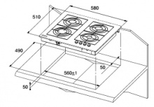 Размеры варочной поверхности (ВхШхГ), мм: 81Х580х510