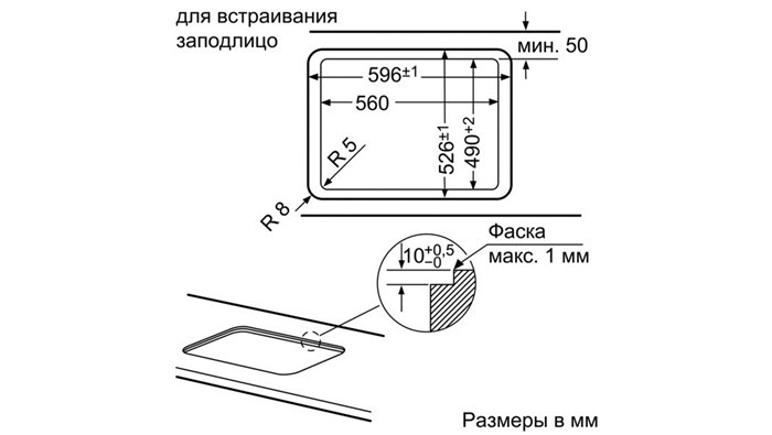 Размеры для встраивания (ШхГ)