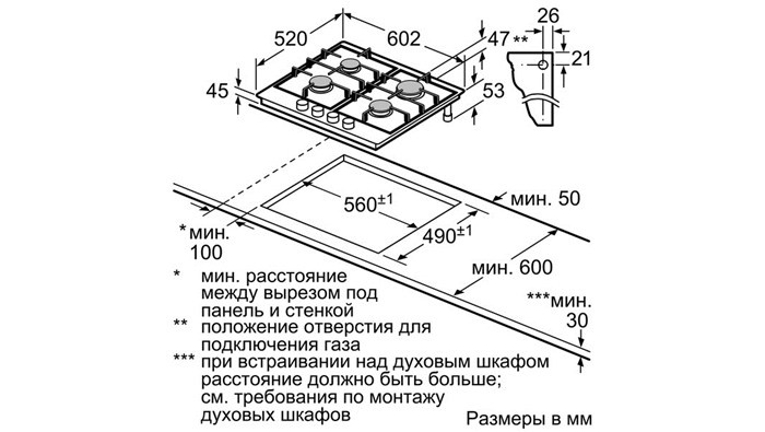 | Размеры для встраивания (ШхГ) | 56 x 49 см |