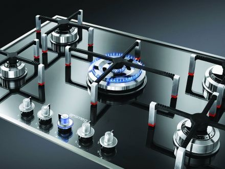 Из пяти конфорок Вы имеете возможность воспользоваться одной с повышенным уровнем нагрева. Конфорки, основание которых выполнено из никелированной латуни, защищены клапанами безопасности.