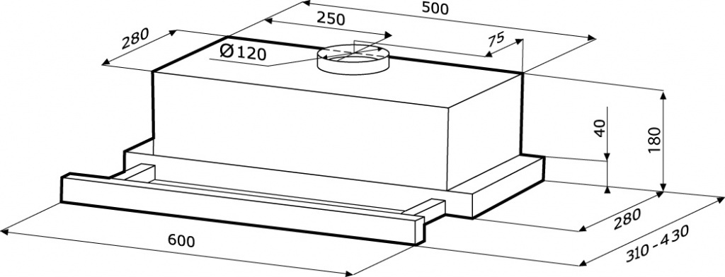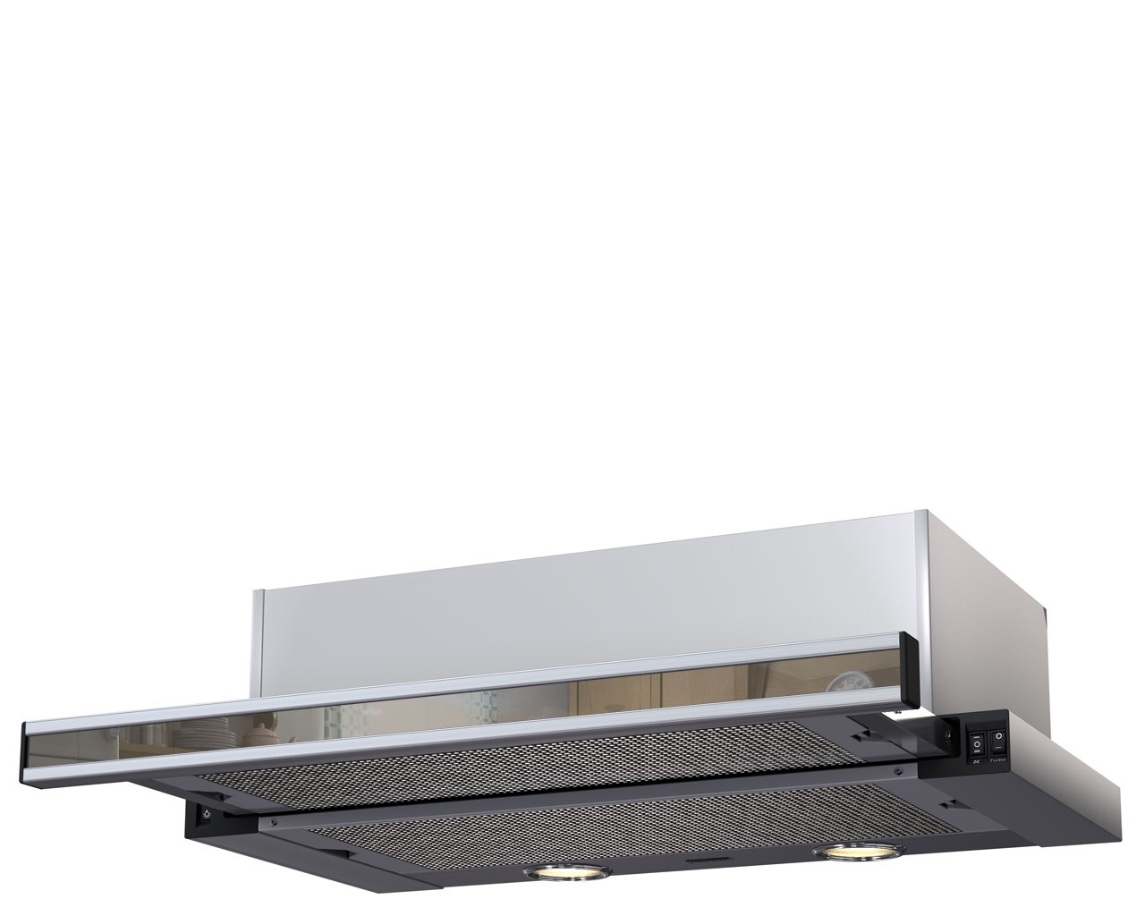 Кухонная вытяжка встраивается в навесной шкафчик отвод /циркуляция ширина для установки 60 см мощность 290 Вт электронное управление бесшумный двигатель автоматический.