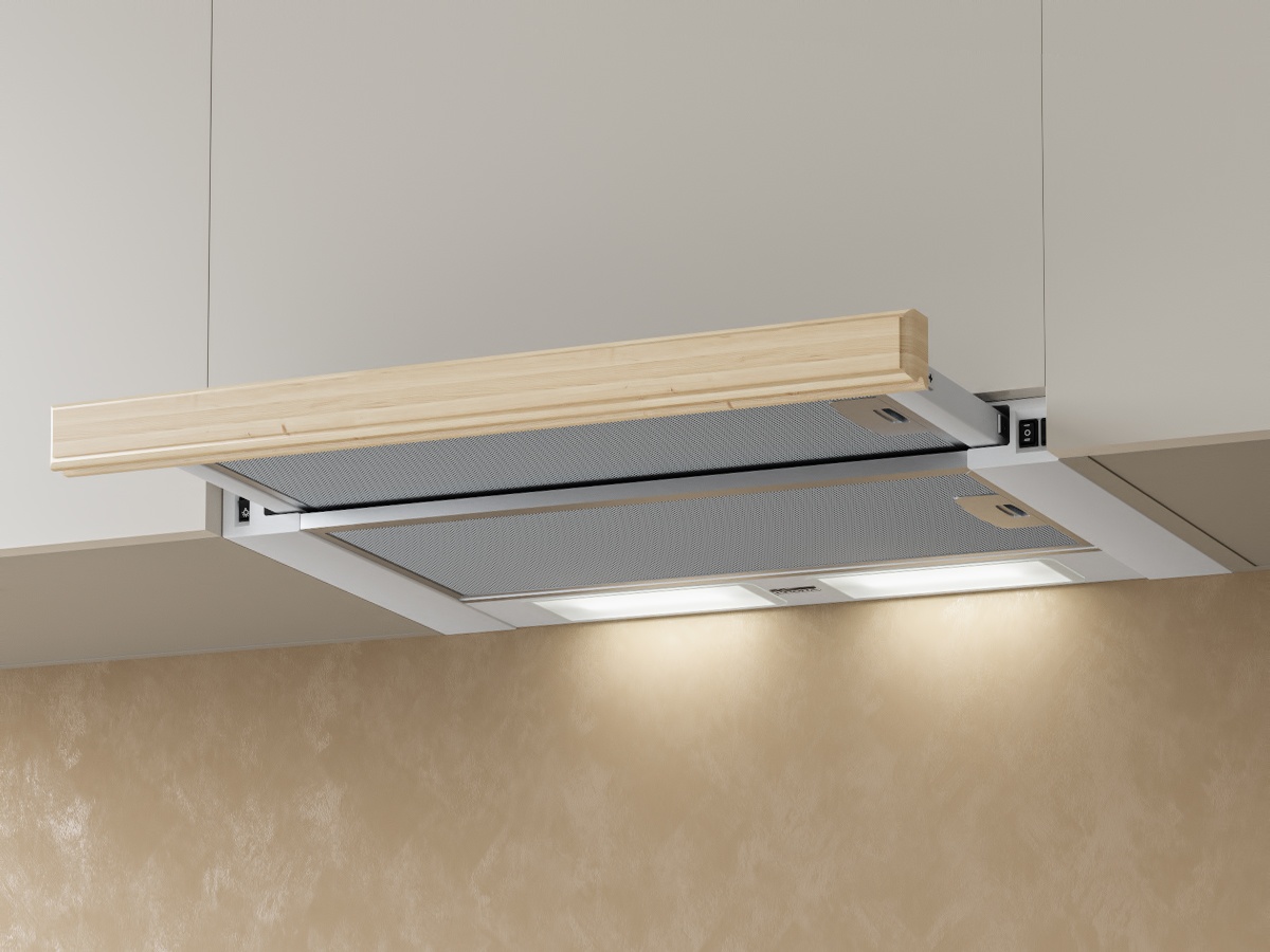 Компактный моторный блок, встраиваемый в шкаф над плитой (всего 135 мм в высоту)